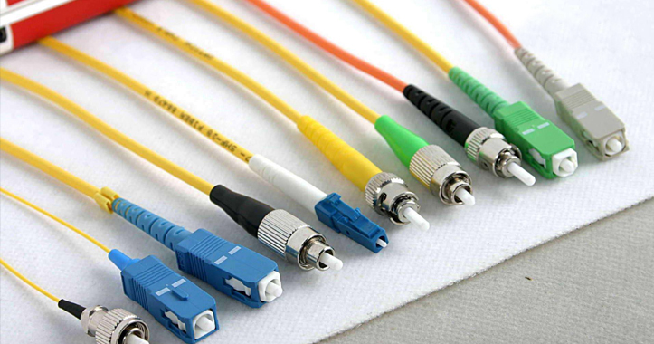 跳線在數(shù)據(jù)傳輸設(shè)備中一般用單模和多模來(lái)區(qū)分,單模跳線顏色通常為黃色,波長(zhǎng)有兩種,分別為1310nm和1550nm,傳輸距離分別為10km和40km;多模跳線顏色通常為橙色,波長(zhǎng)為850nm,傳輸距離為500m。根據(jù)接頭類型還可分為以下幾種: